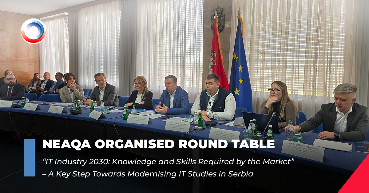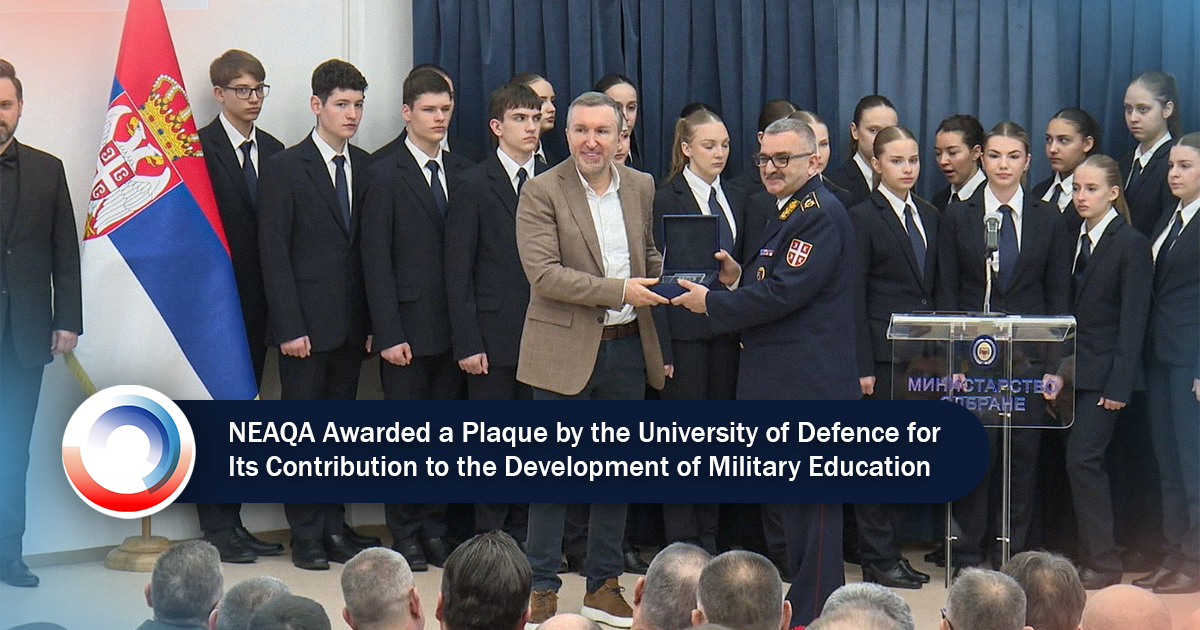 The Director of the National Entity for Accreditation and Quality Assurance in Higher Education (NEAQA), Prof. Nebojša Zdravković, PhD, attended the ceremony marking the University of Defence Day on 24 February 2026, held at the amphitheatre of the National Defence School “Vojvoda Radomir Putnik” in Belgrade. The ceremony was also attended by the Minister of … Read moreNEAQA Awarded a Plaque by the University of Defence for Its Contribution to the Development of Military Education